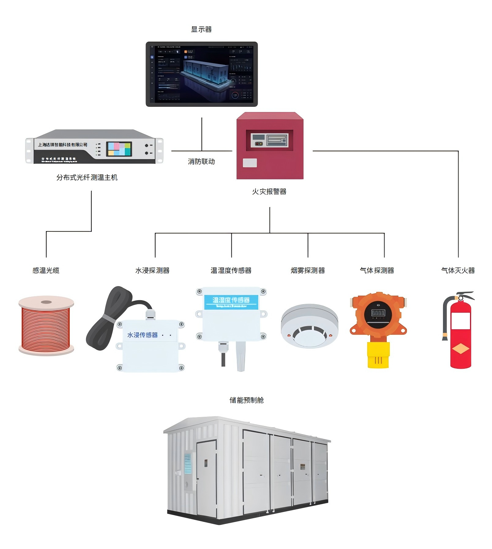 儲能艙綜合在線監(jiān)測系統(tǒng)通過多維度參數(shù)實(shí)時(shí)采集、智能分析與聯(lián)動(dòng)控制,實(shí)現(xiàn)對儲能倉內(nèi)環(huán)境安全、消防系統(tǒng)的全面監(jiān)控,提前識別潛在風(fēng)險(xiǎn),實(shí)現(xiàn)“狀態(tài)可知、風(fēng)險(xiǎn)可控、故障可溯”的智能化管理,保障儲能系統(tǒng)穩(wěn)定運(yùn)行,降低安全事故概率。