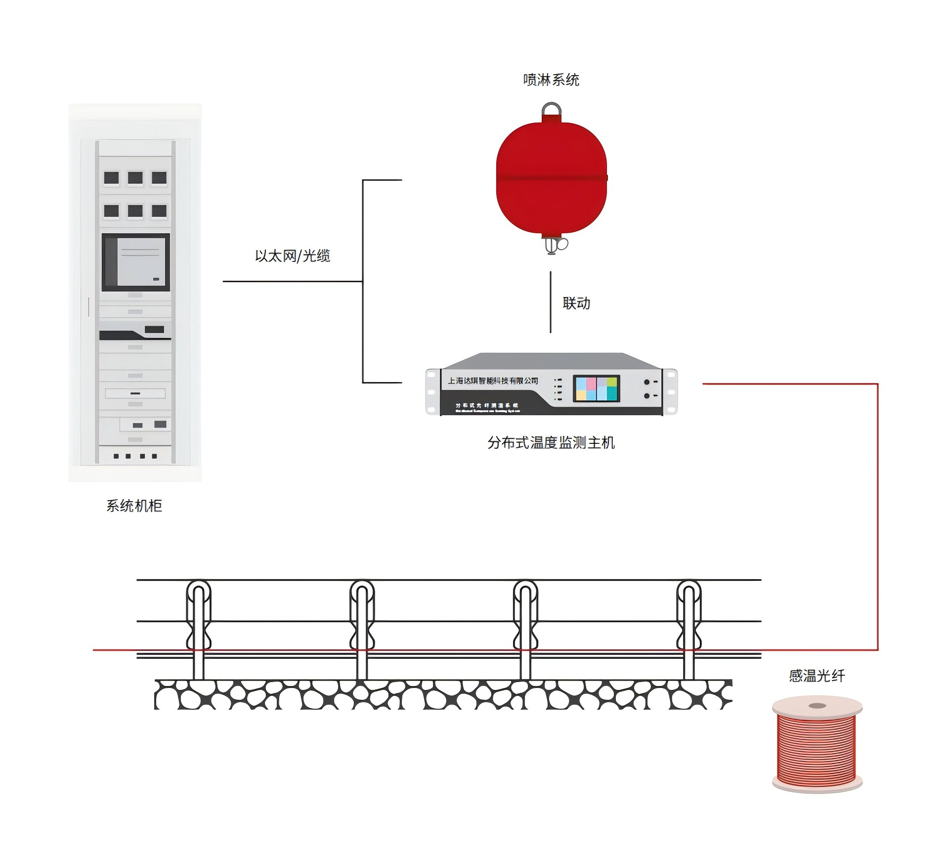 采用分布式光纖測溫技術(shù),通過沿皮帶全線敷設(shè)感溫光纜,實(shí)時(shí)、連續(xù)地監(jiān)測皮帶表面及托輥區(qū)域的溫度分布,可精準(zhǔn)識(shí)別因摩擦過熱、軸承故障或煤粉自燃等引發(fā)的異常溫升,并精確定位熱點(diǎn)位置;該系統(tǒng)具備抗電磁干擾、防爆、耐粉塵、長距離監(jiān)測和高可靠性等優(yōu)勢,有效預(yù)防皮帶火災(zāi)事故,保障輸煤系統(tǒng)安全穩(wěn)定運(yùn)行。